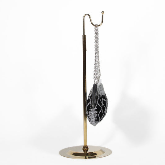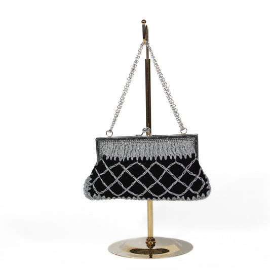 Vintage selskapsveske i sort velur med sølvdetaljer